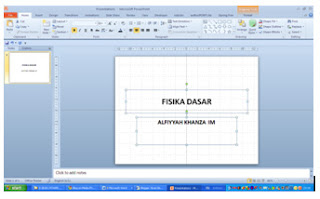 Ketika Anda memulai menjalankan PowerPoint, secara otomatis muncul halaman kerja dengan jumlah 1 slide, slide awal yang biasanya digunakan sebagai slide untuk judul dari materi presentasi yang dilengkapi dengan nama presenter.